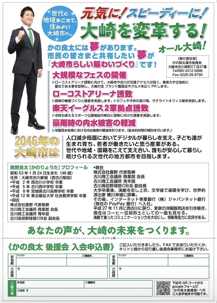 大崎を変革する!大崎市長選挙 候補者